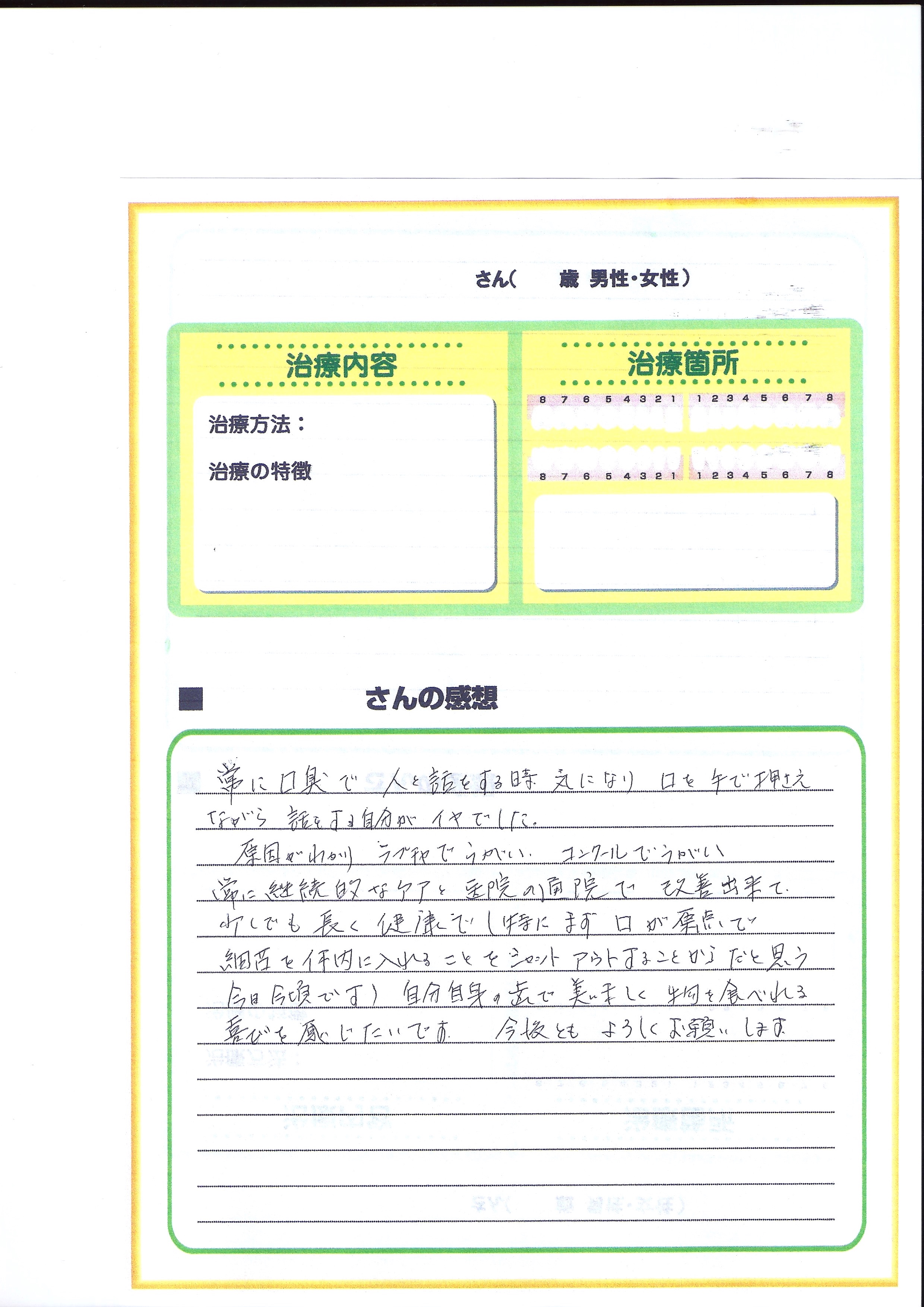 上の写真が術前、下が術後の結果ですそして下がアンケートの一例です